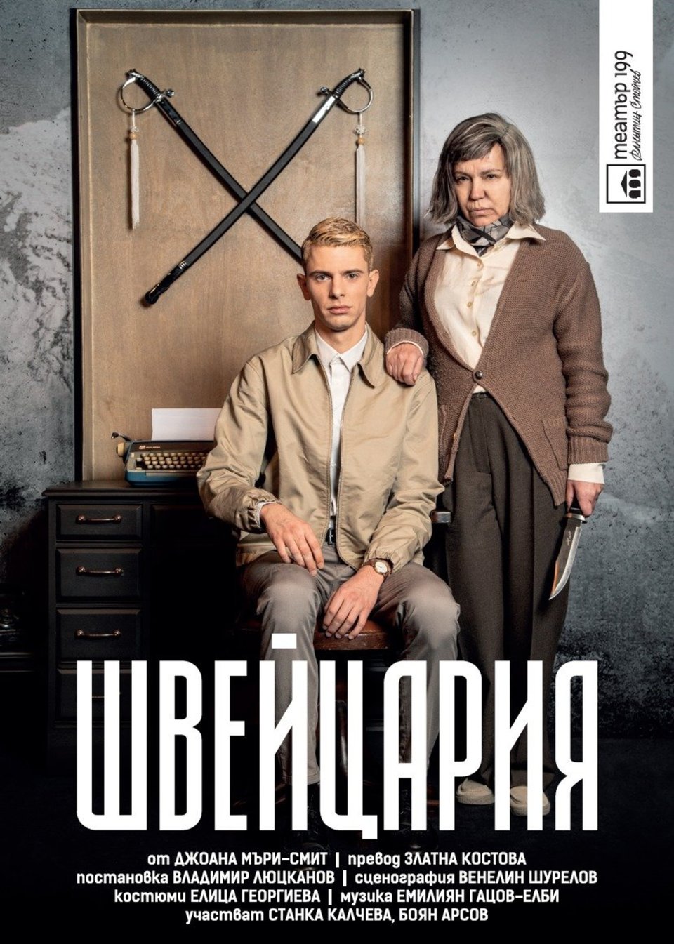 Пиесата „Швейцария“ Ви среща със световно известната писателка Патриша Хайсмит, когато тя вече живее като отшелник в алпийската страна и няма намерение да публикува повече романи. В дома й пристига енигматичен млад редактор, изпратен от нейните издатели, за да я убеди да напише още една история за харизматичния престъпник Том Рипли. Това, което ще последва е неочаквано и смайващо… Но тук повече не можем да разкрием. Трябва да гледате постановката и гарантираме – ще бъдете запленени от света на талантливата, ексцентрична и напълно магнетична Мис Патриша Хайсмит. Романите на Патриша Хайсмит са от онези, за които се казва, че веднъж разгърнати, се четат на един дъх. Твърди се също, че са пристрастяващи. Неин почитател е не друг, а факирът на съспенса, Алфред Хичкок, който заснема киношедьовъра "Непознати във влака" по едноименната й книга, а "Талантливият мистър Рипли" е друго хитово заглавие на Хайсмит, превърнало се в култов филм. Безспорно тя е сред психологически най-проницателните автори в света на криминалния жанр. Макар и ужасени от историите й, ние намираме за неустоим пътя на престъпника, по който тя ни води.